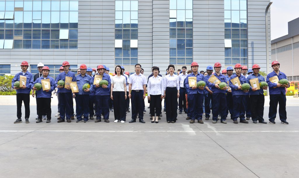 滚滚热浪,暑气逼人。在8868体育股份车间生产一线,总有一些人因责任而坚守,因梦想而执着。“战时状态”下的他们坚守岗位,艰苦奋斗,汗流浃背时正好迎来一丝丝清凉和一份份关怀。6月26日上午,8868体育股份组织开展“酷暑夏日、清凉入车间”活动,常务副总经理谢保华、副总经理马辉艳等领导为一线工人送来凉茶、西瓜等清凉解暑物资。