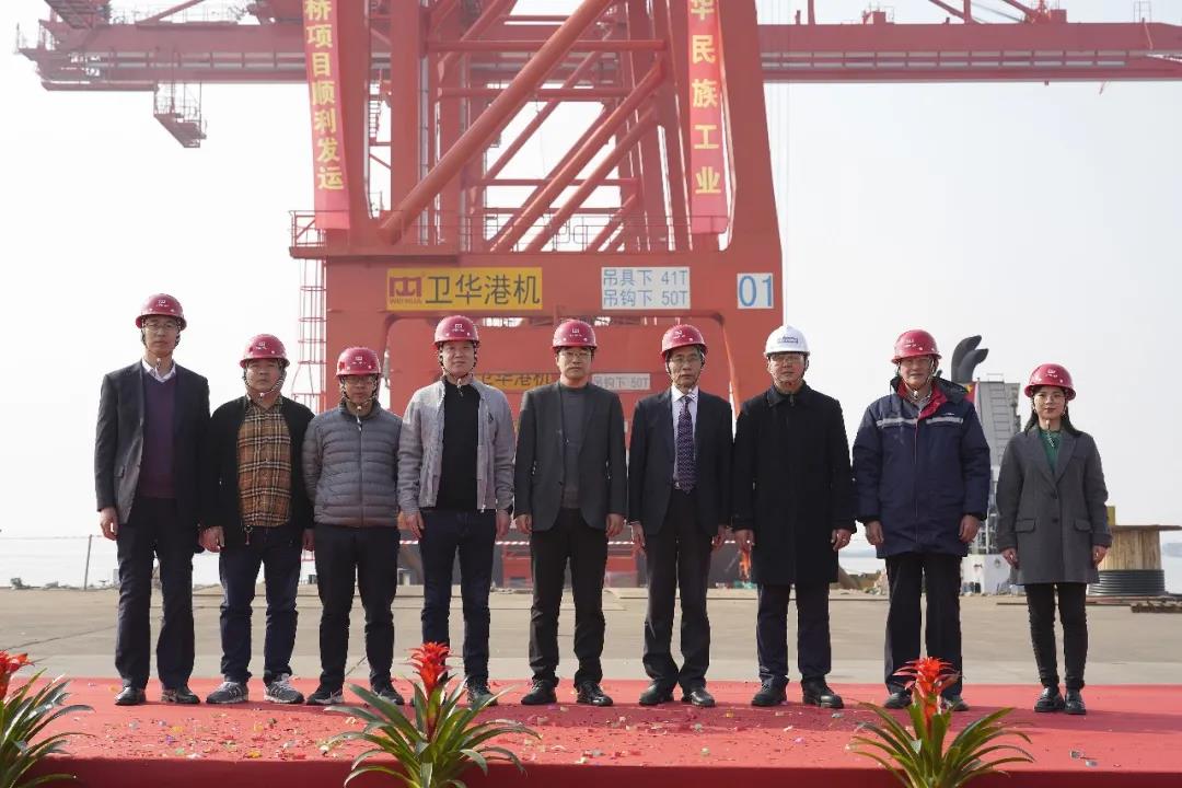 2021年11月26日上午10时17分,一场隆重且意义非凡的发运仪式在江苏8868体育基地拉启大幕,在轰鸣的汽笛声中,8868体育股份为浙江石油化工有限公司(以下简称“浙石化”)智慧码头而研发的远控自动化岸桥首批三台产品正式发运离港,启航前往用户码头。