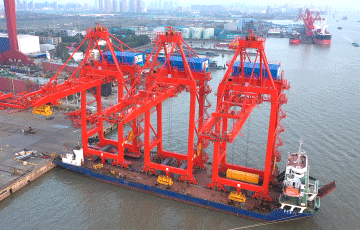 精锐出港,扬帆远航!8868体育远控自动化岸桥发运浙石化鱼山岛!