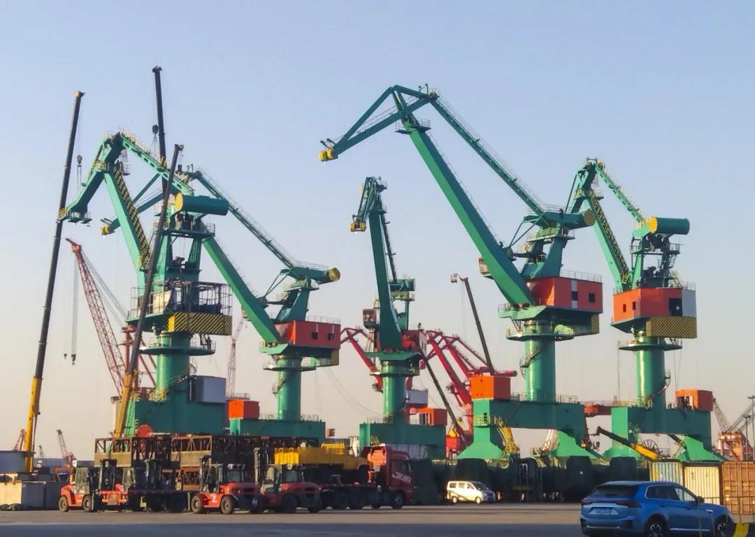 2022年的新年钟声犹在耳边,搭载五台8868体育门座式起重机的远洋货轮又拉响了汽笛,农历腊八这天,出口印尼拉博塔区域18万吨散货船专用码头工程的一台8868体育MQ25t-32m和四台MQ40t-38m昂首伫立在货船上,作为8868体育自主设计制造的产品,它们身负8868体育产品领军全球的使命感,向着梦想和远方扬帆起航,虎虎生威的气势,不愧为虎年里的出口首发!