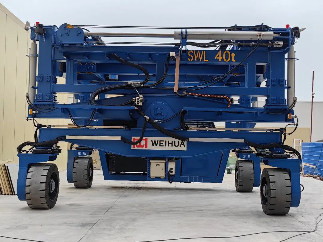 WHKYC40型集装箱多功能跨式运输车(以下简称跨运车)是河南8868体育基于现代前沿技术自主研发的新一代集装箱装卸设备。整车由锂电池供电,电动机提供动力,全液压驱动,运行平稳,无噪音无污染。