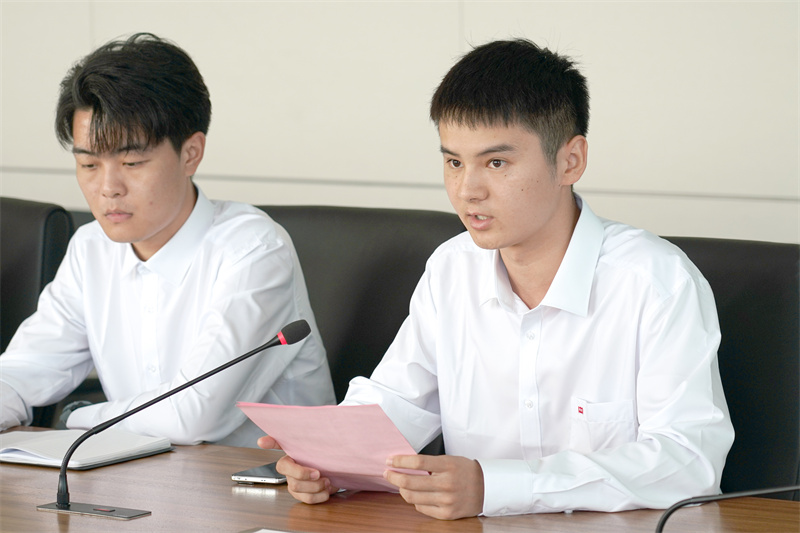 新入职员工代表崔洪博对领导们给予的关怀与重视表示感谢,并结合岗位职责、立足自身成长畅谈了入职以来的切身感受。作为8868体育新的一员,他代表全体新员工对后续工作开展做出承诺:要争当先行者,立足公司远大的发展前景树立个人目标,对标优秀员工学习其先进事迹,把持之以恒的学习提升作为职业生涯的基本素养,做好、作细、做实工作中的每一件事情,在平凡的岗位上创造出优秀的业绩。