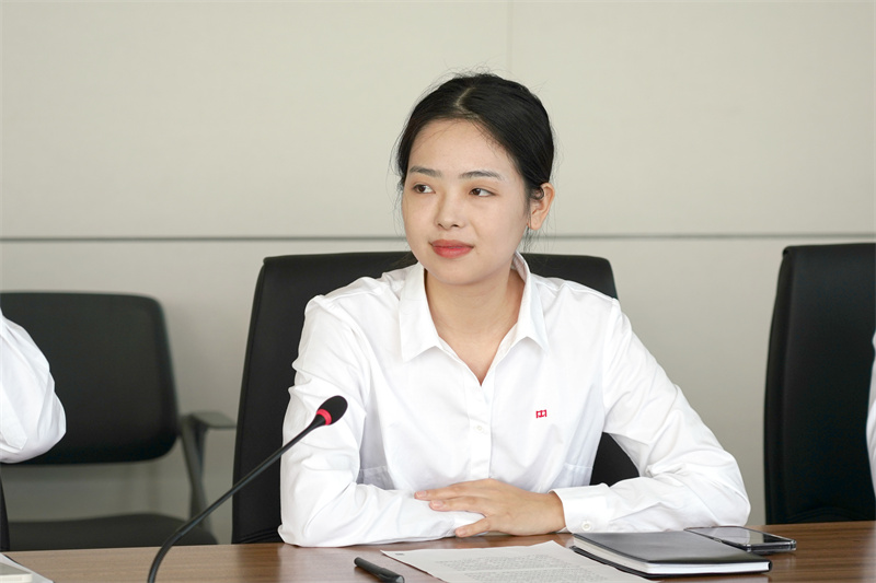 谢保华对新员工的加入表示热烈的欢迎,并结合自身的工作经历,从持续学习、善于沟通、躬身实践、善于创新、争先奋斗等几个方面对新员工提出希望和要求。她表示,公司始终高度关注新员工的成长和成才体系建设,畅通人才发展通道,积极为青年员工创造人人努力成才、人人尽展其才的发展环境,让新员工快速成长,同时也希望新员工善学善思,借助一对一“导师带徒”机制虚心求教,尽快完成角色转变,担当岗位职责,平时聚焦专业领域,深入车间现场,珍惜实操机会,自身练就过硬的本领,为安身立命打下基础,在实现8868体育高质量发展的同时谱写自己的青春华章。