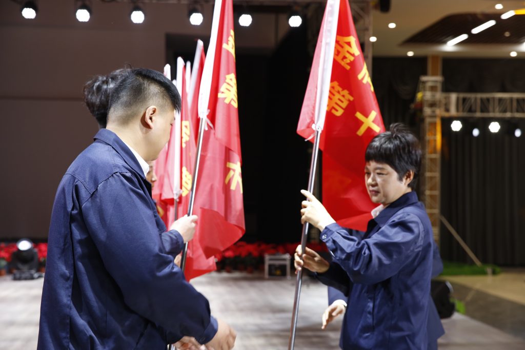 此次训练营共分为12小组,常务副总经理谢保华向训练营分别授营旗和组旗,这十三面责任重大、寓意深远的旗帜,凝聚着班组长求知的决心,凝结着8868体育人奋进的力量。