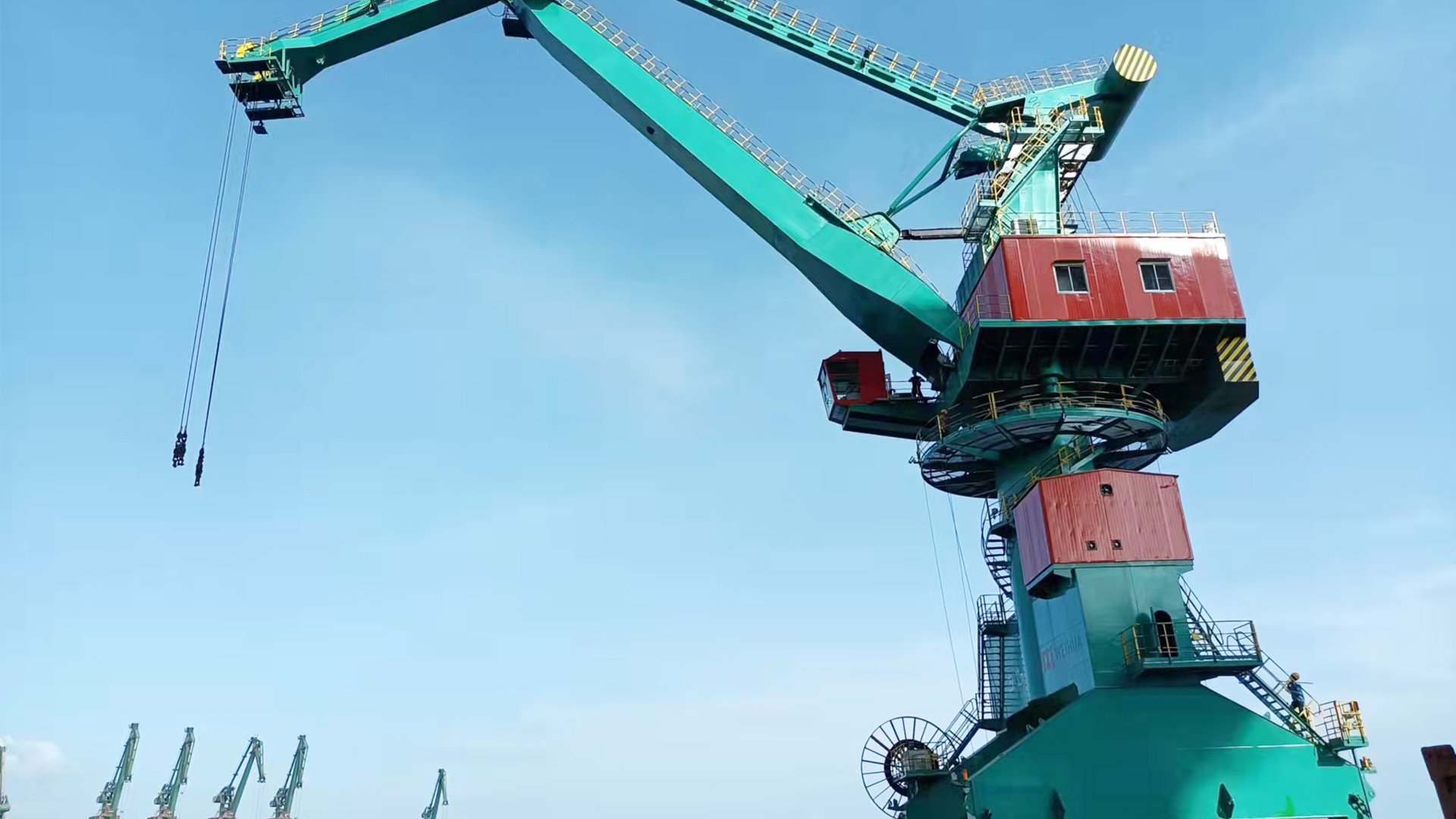 门座起重机根据臂架结构形式,分为单臂架和四连杆两种类型。单臂架门座起重机结构简单、起重量大自重轻。四连杆门座起重机采用组合臂架系统,实现变幅过程货物水平移动,具有水平落差小、变幅平稳、功耗低的特点。两种类型的门座式起重机均能满足件杂货、散货以及集装箱的装卸作业要求,具有应用范围广、作业效率高、整机运行稳定等特点。