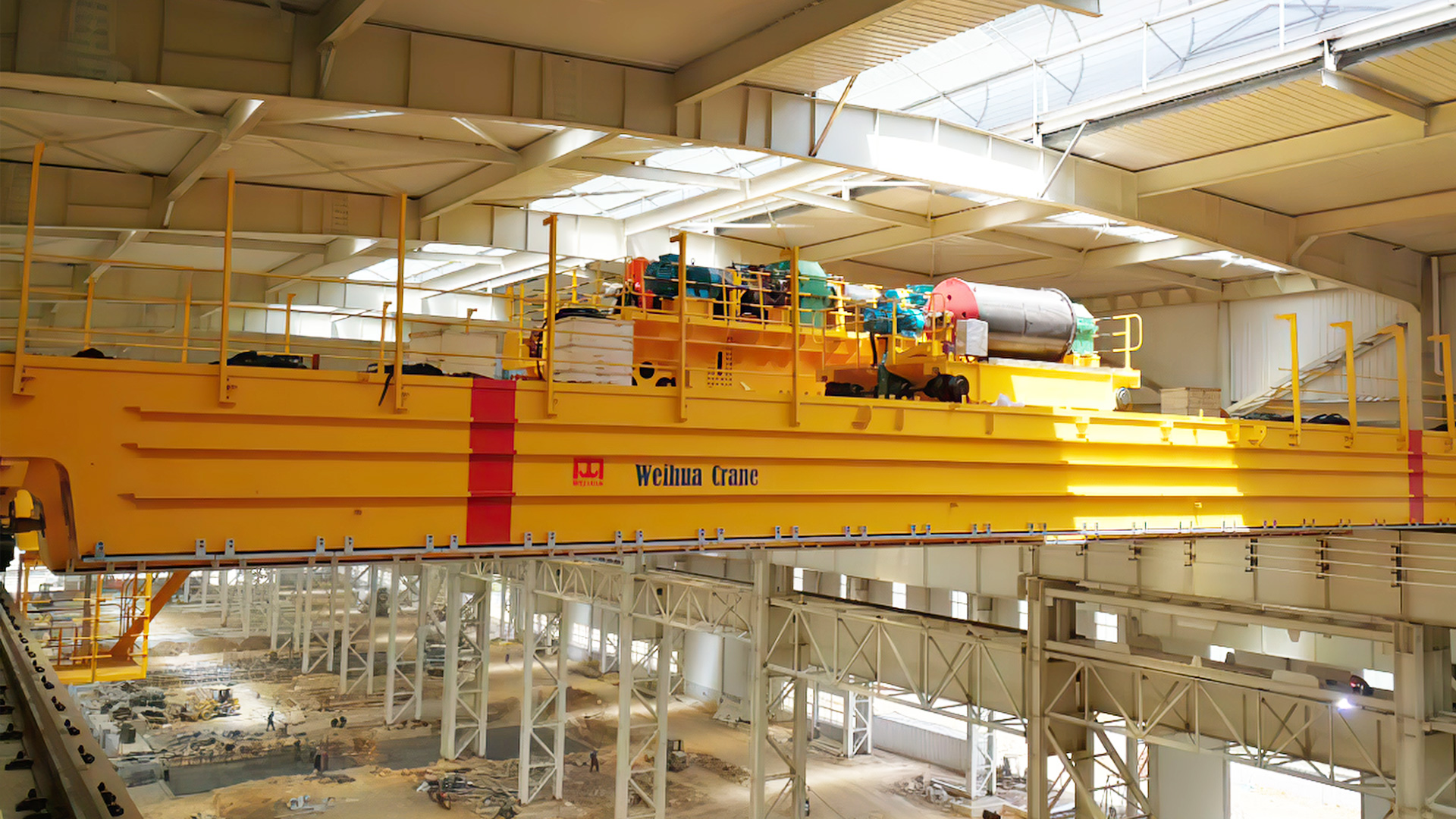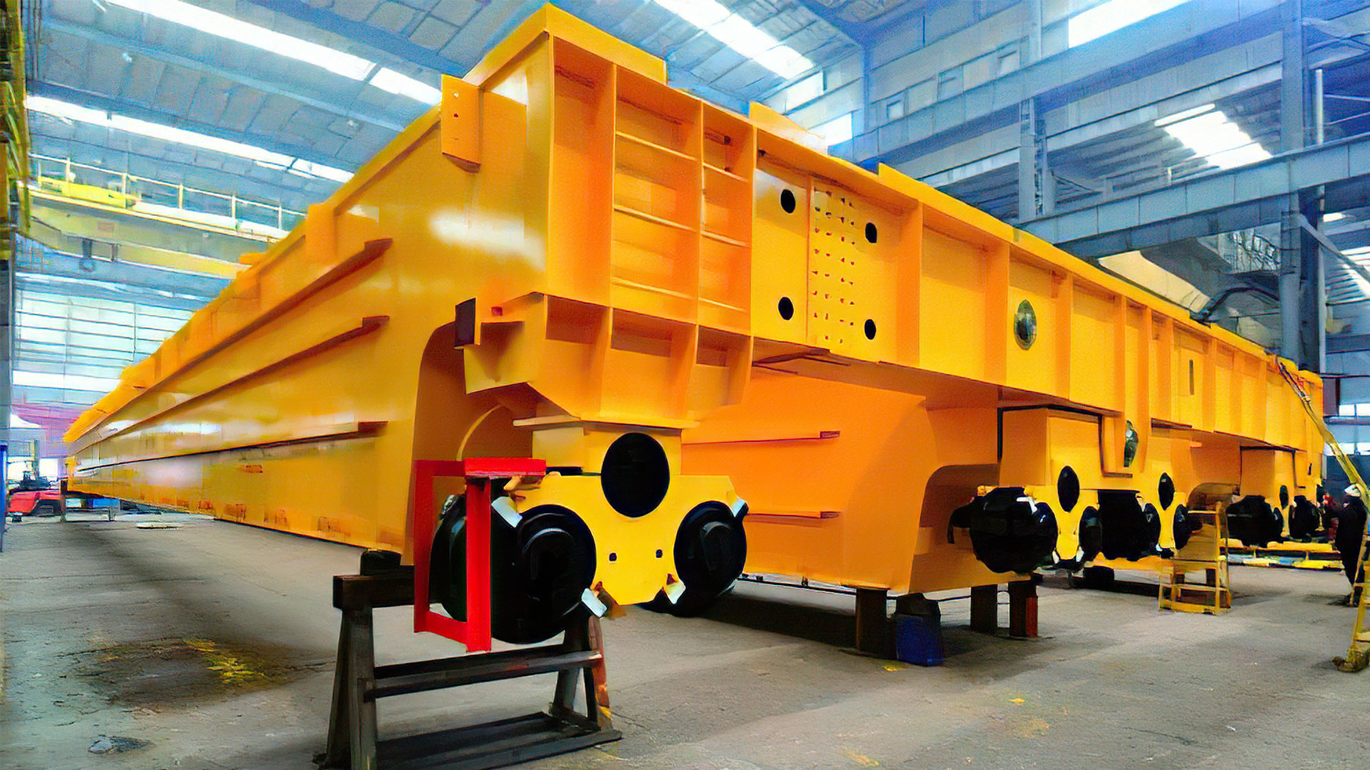 锻造起重机主要有双梁双轨单小车和三梁四轨道双小车两种结构形式。锻造起重机的结构形式与锻压厂房及液压机布置密切相关。