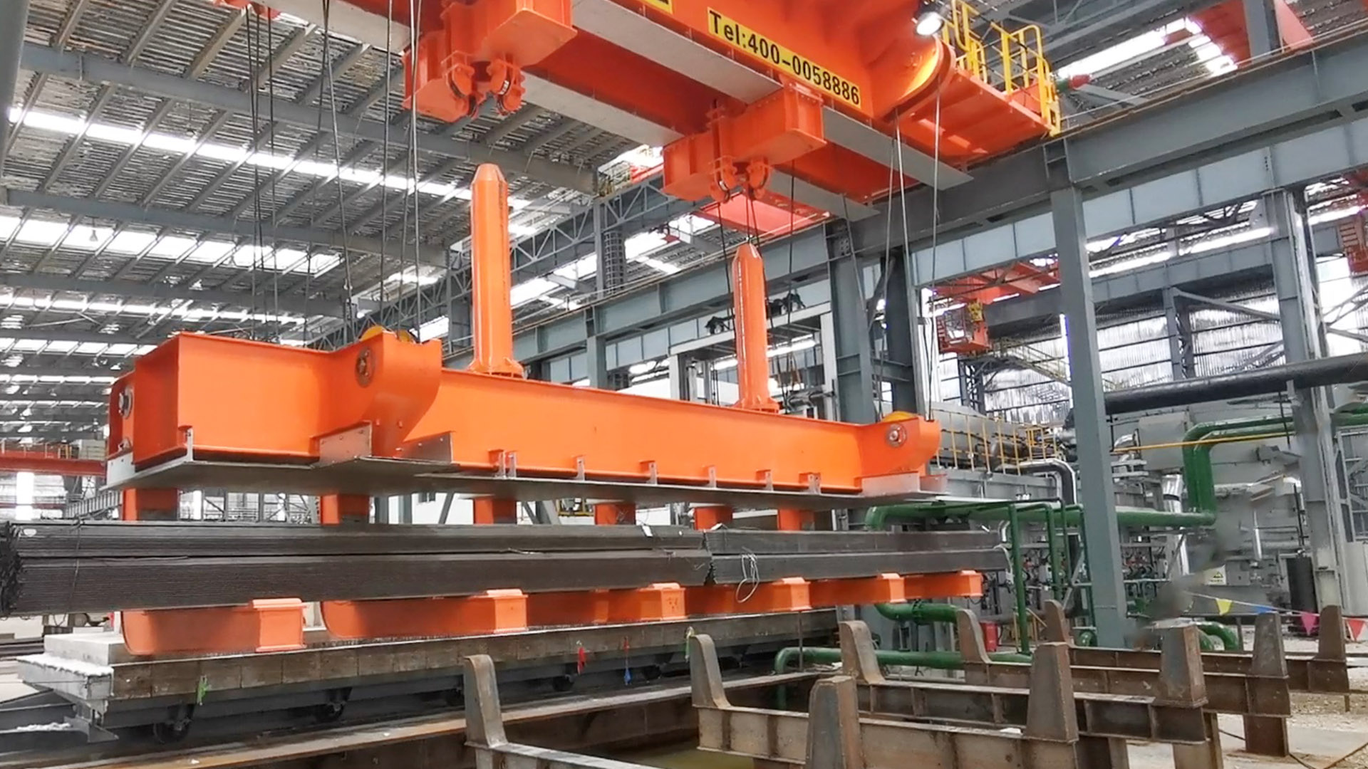 8868体育智能淬火起重机主要用于高温型材或棒材的吊装并进行淬火工艺。