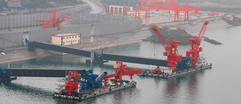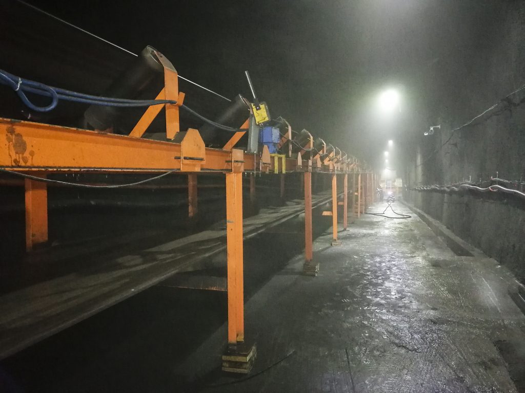 8868体育承接的浙江石油化工有限公司4000万吨/年炼化一体化基地配套码头工程干散货码头带式输送机及附属设备系统装置项目,包含8条皮带机及其他附属设备系统,其中4条2200mm大带宽带速5m/s,运量7680t/h,采用中部三驱动布置形式,电机功率3x800kw,单机长度950m。